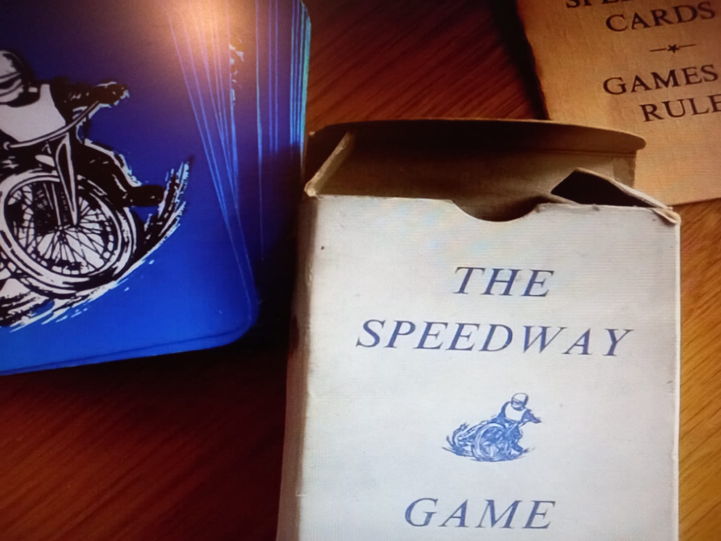 The compulsive yet ingeniously simple pursuit that is ‘The Speedway Game’ is a rapid card playing game. Thrown into the mix are falls, injuries, tape infringements and blown big ends!