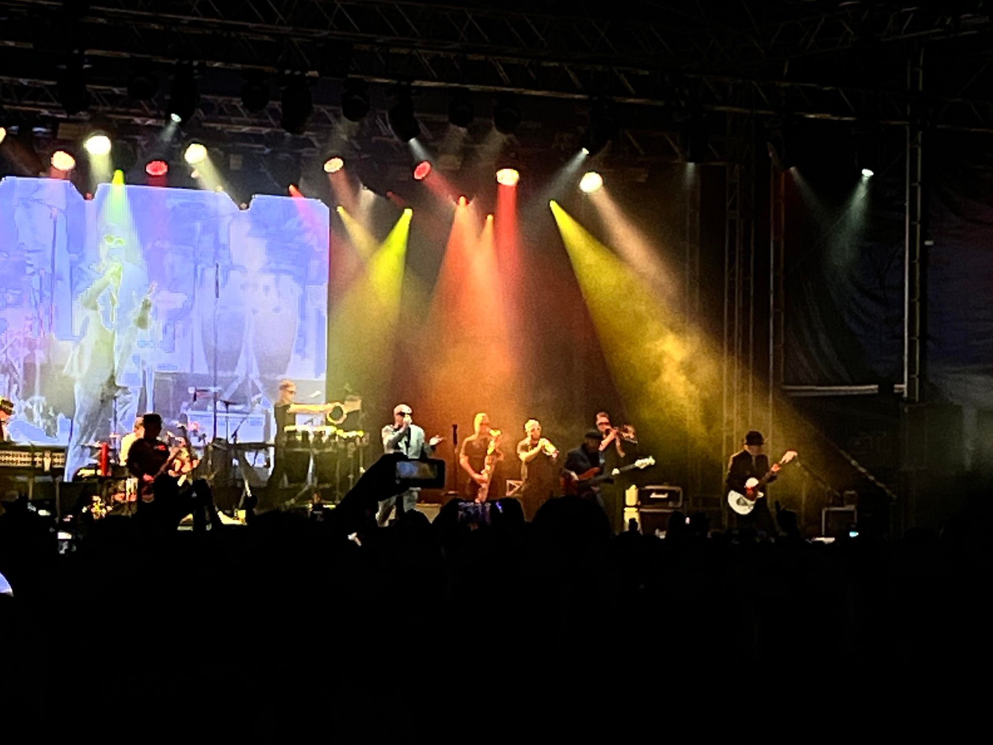 Perhaps I was the only one present that night who made these hypothetical links, but then I was fully signed up to the collective notion that this sextet represented everything that spoke of a golden era of popular music with the ability to gyrate the many in ways that defied the average age of the thousands of party goers. The smell of Ralgex and Poligrip was suddenly and magically nullified as Suggs – aka Graham McPherson ─ seized the night with his effervescent energy pulsing through the arena. According to legend, our East Sussex Graham became Suggs when he casually stuck a pin in an encyclopaedia of jazz musicians and struck the name of Peter Suggs. However, there is nothing random about the band who have the uncanny ability to create chords connecting with the mundane and the obscure – the very spirit of the regular working-class Brit whose DNA stands for Diva, Nostalgia & Ale.
